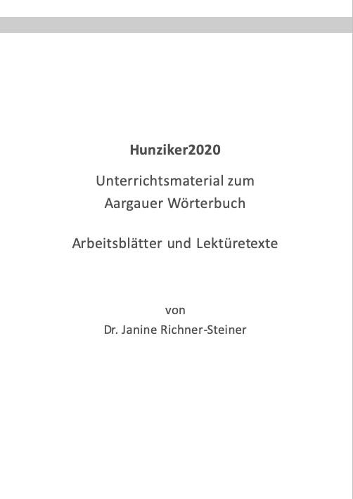 Das Unterrichtsmaterial (Download rechts) ist im Rahmen des Projekts «Hunziker2020» entstanden. Es richtet sich an die Stufen Sek I und Sek II und kann als fortlaufende Sequenz, bestehend aus 14 Lektionen, oder auch für einzelne Lektionen zu einem bestimmten Fokusthema verwendet werden. Die Unterrichtssequenz ist logisch aufgebaut und beinhaltet Themen der Sprachbetrachtung (Lexikologie, Dialektologie), aber auch literarische (Dialektliteratur) und gestalterische Einheiten (kreatives Schreiben). Konkrete Anweisungen und Überlegungen für die Lehrperson führen durch die Lektionen, vorgefertigte Arbeitsblätter können den SchülerInnen verteilt werden. Die Unterrichtsmaterialien wurden erarbeitet von Dr. Janine Richner-Steiner.